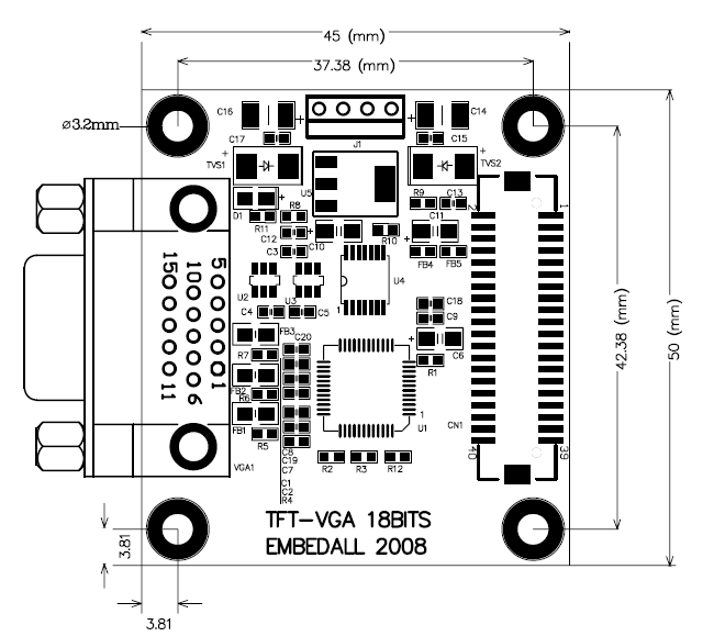 其中TFT 輸入為16或18位,而VGA輸出為標準的15-pinVGA輸出,支持的分辨率為: 1024 x 768, 800 x 600, 640 x 480!