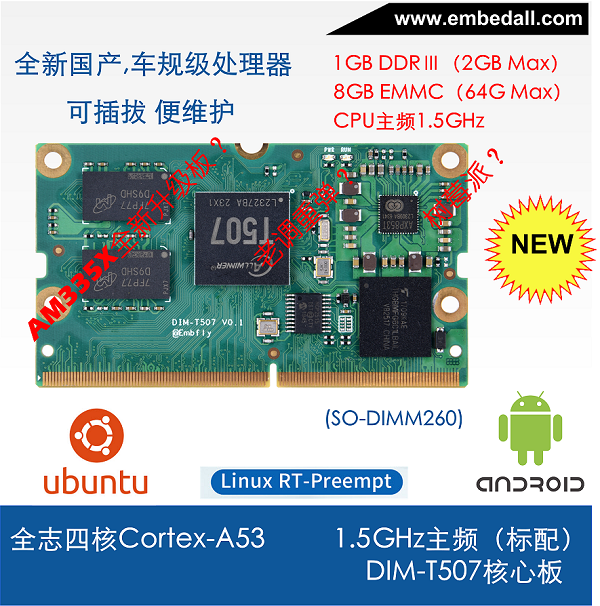 l 采用Allwinner公司Cortex-A53四核T507車規(guī)級處理器,運行最高速度為1.5GHZ;
