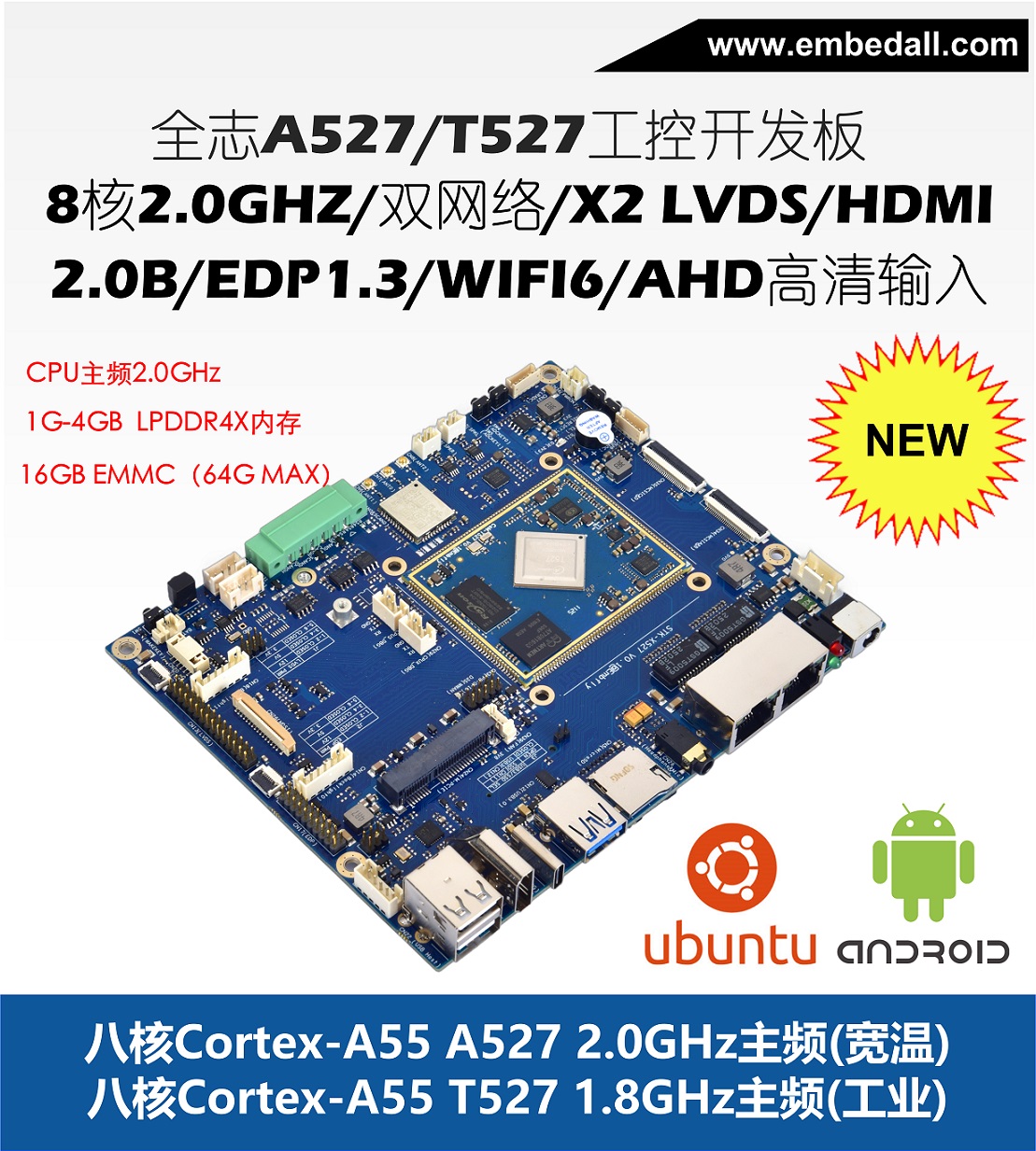 內(nèi)置8*RAM Cortex-A55, 8核主頻可運(yùn)行至1.8GHz,提供更穩(wěn)健強(qiáng)勁的處理能力