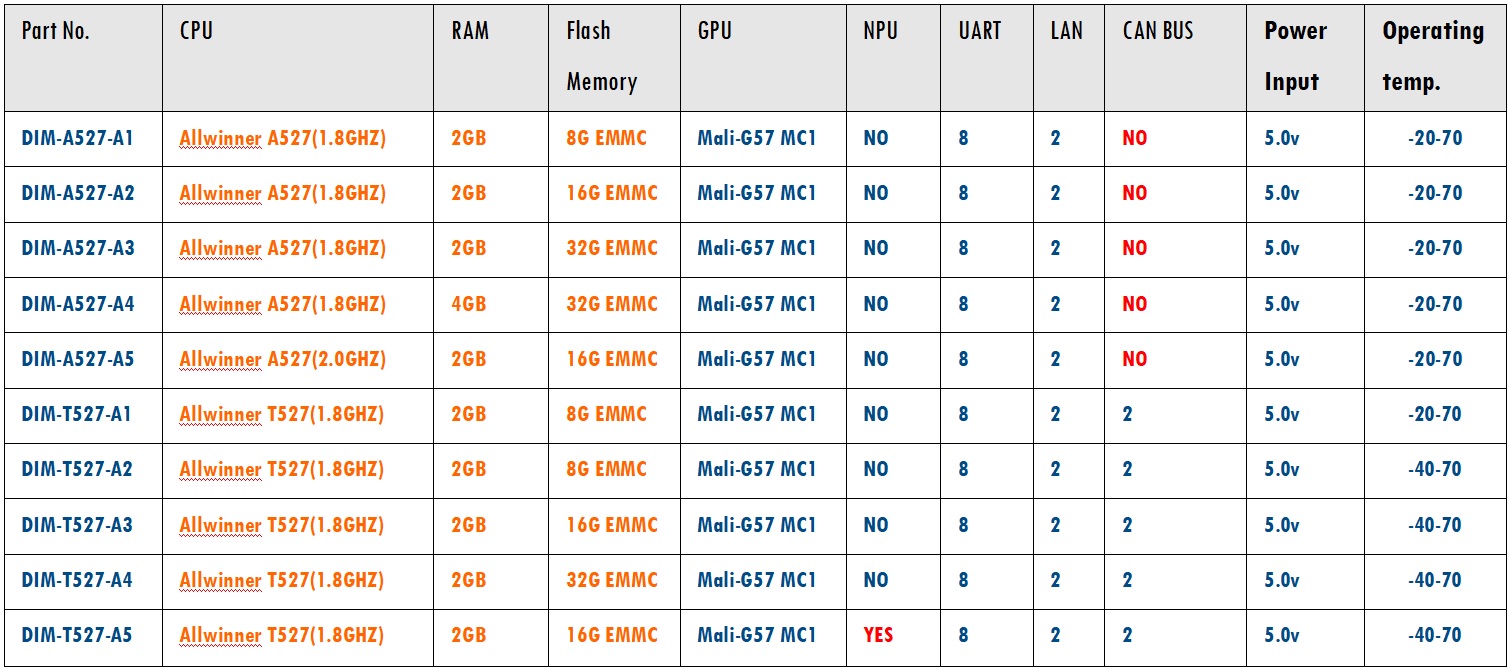 DIM-X527可提供雙千兆以太網接口;支持MIPI-CSI輸入(4+4lane、4+2+2lane、2+2+2+2lane);支持10路串口;支持HDMI2.0B/LVDS/MIPI DSI顯示;特定型號還支持2TOPS的NPU, 為圖像處理及畫質增強等AI應用提供了性能支持;它還還提供了3.3V I/O接口,可提供寬溫的工業組件,運行于條件惡劣的工業現場!該產品可應用于智慧工業、行業智能、智能電網等領域,我司提供各種參考設計。