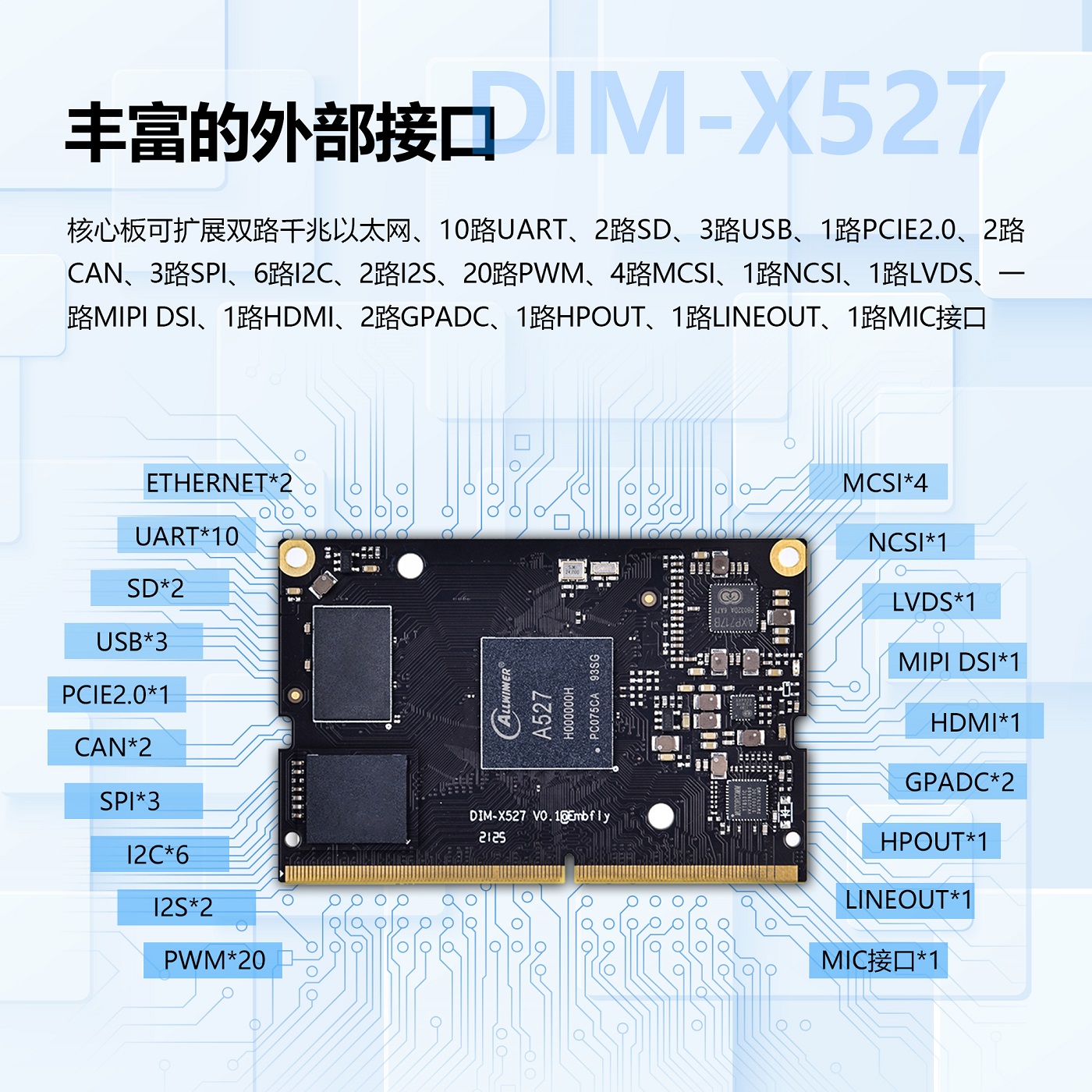 l支持PCIE2.1;支持 10路UART;支持雙路CANBUS;支持雙路千兆以太網;