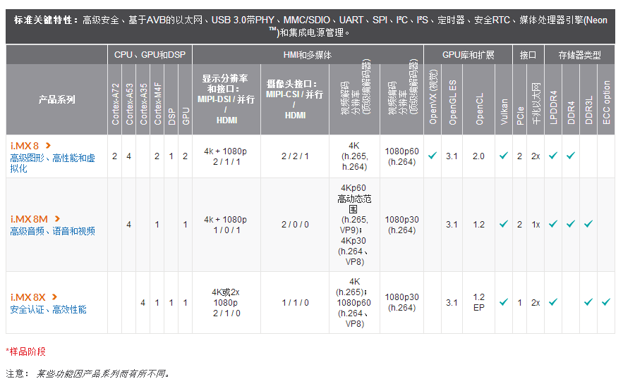 德克薩斯州奧斯丁,2016年5月17日訊(恩智浦FTF 2016)– 恩智浦半導體(NXP Semiconductors N.V.)(納斯達克代碼:NXPI)今天展示了新一代i.MX 8應用處理器安全、生動、高交互性接口的應用潛能。 標準關鍵特性 基于i.MX 8多傳感器處理器系列的多傳感器實現套件(MEK)。該傳感器可以通過提升高要求計算和媒體密集型應用中的多媒體和顯示接口性能改善日常交互體驗。 IMX8-MEK 全新的i.MX 8多傳感器實現套件兼具業界最具擴展性的應用處理器系列、高水準的系統安全性以及出色的能效。該套件提供系統分區功能,方便開發人員以硬件定義的安全性專注于創新應用的軟件定義結果,確保互聯汽車、互聯醫療、工業機械與工具等各種關鍵應用的安全與隱私。利用i.MX 8智能架構,可以安全地訪問和提取數據,供消費者與企業使用。 恩智浦資深副總裁、微控制器業務線總經理Geoff Lees表示:“超動力計算時代的到來有望顛覆我們工作、生活和娛樂的方式。在這個GPU加速的新世界中,消費者將能享受令人驚嘆的人與互聯設備的交互體驗。i.MX 8架構為開發人員提供了發揮想象并設計自然人機交互的自由,將惠及生活中的方方面面。” 多傳感器:任何物體或表面的生動體驗 i.MX 8旨在通過強大的媒體引擎增強交互活動。它具有4K視頻和圖形性能,可應用于大多數物體或表面,提高虛擬或增強現實的使用體驗。這項技術為開發人機交互——比如機器人和視覺檢測、家用或商用無人機、可穿戴設備等——提供了機會,可將掃描功能應用與現代工業的自動化和效率提升。 私密與個性化交互 i.MX 8智能架構在消費者易用性以及最高安全水準之間實現了平衡。該架構從最基本的高級安全性做起,具有軟件和硬件平臺分離的特點,提供關鍵故障/恢復選項,保護數字特征,同時安全地實現互聯的數字化界面。 關鍵應用的易用性和安全性 i.MX 8推動了多傳感器進步,可用于直觀手勢控制、語音識別、自然語音識別和音頻加速。在諸如醫療保健或工業實現(比如互聯車輛)等任務關鍵型應用中,i.MX 8技術讓體驗配置與數字特征相匹配。例如,在互聯汽車中,重要的駕駛信息經過配置并顯示在信息娛樂、儀表盤、高級抬頭顯示器等多個顯示屏幕上,可以設計座椅調節、音樂音量以及設備連接等個性化設置,增強駕駛樂趣和安全性。 深圳盈鵬飛嵌入式已經評估了該套件,功能還是相當的強大的。盈鵬飛嵌入式后續會繼續關注i.MX 8系列的產品相關消息,為廣大網友提供給第一手的行業資訊。也可以掃一掃關注盈鵬飛官方公眾號,為您提供更多的行業資訊,技術服務,產品咨詢等... i.MX 8系列應用處理器:多核,Arm® Cortex®-A72,Cortex-A53,Cortex-A35,Cortex-M4內核。該系列應用處理器是一種功能和性能可擴展的多核平臺,包括基于Arm ® Cortex ®架構的單核、雙核和四核系列產品,提供基于Cortex-A72 + Cortex-A53組合、Cortex-A35和Cortex-M4的解決方案,適用于高級圖形、成像、機器視覺、音頻、語音、視頻和安全關鍵應用。i.MX 8目前官網推出了三個系列,有i.MX 8、i.MX 8M、i.MX 8X。三個系列都還木有正式上市,都是屬于樣品階段。但目前NXP推出的是i.MX8套件已經正式上市了。
