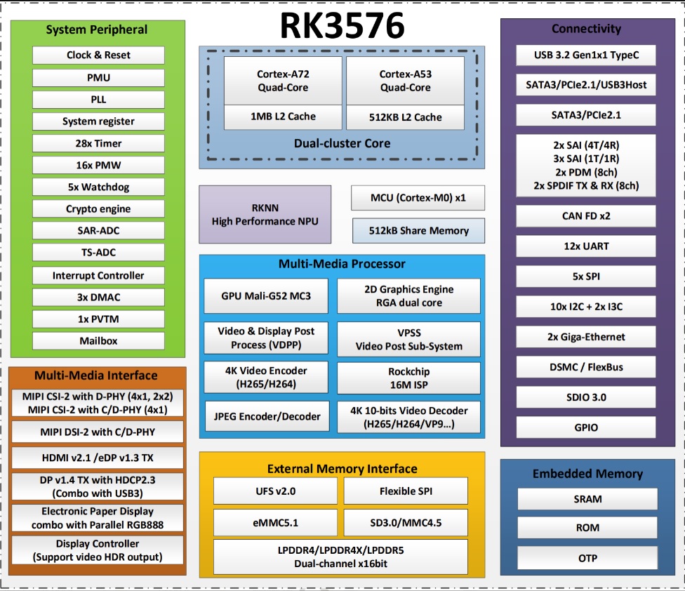 RK3576處理器 RK3576-Rockchip-SoC-Roadmap-for-AIOT 以下為RK3576芯片規格: 編解碼: 顯示: 視頻輸入: 高速接口 其他 安全 更強的顯示能力